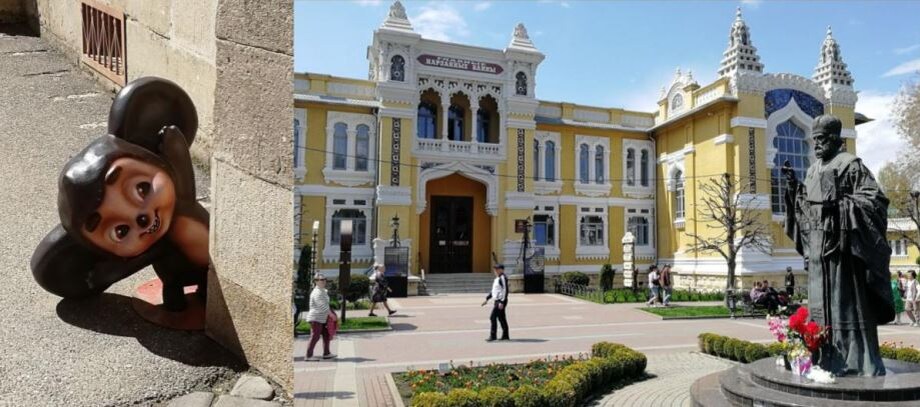 Мы сначала ничего не могли понять, но потом напрягли друзей и интернет, и всё стало ясно. Оказывается в Кисловодске снималось много сцен современного фильма «Чебурашка». Мы ничего, кроме рекламы, из этого фильма, не видели. Но большинство публики, судя по реакции, видели фильм и знали в чем дело.