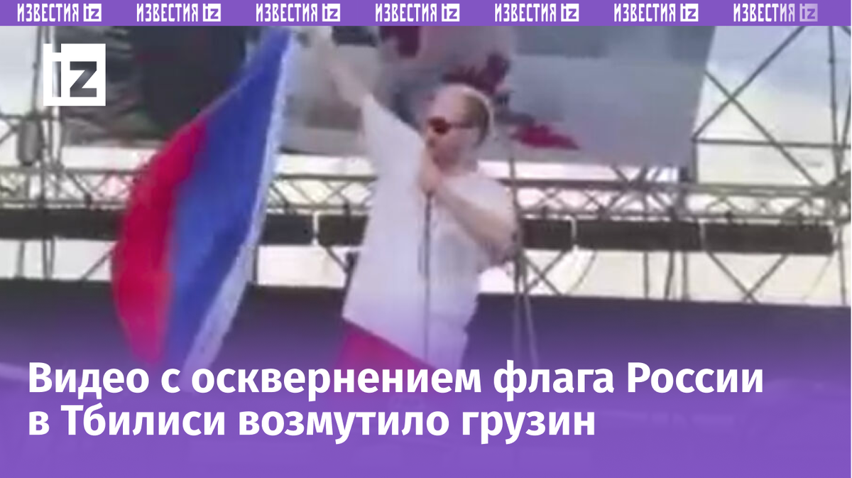 Грузинский певец Эрекле Гецадзе осквернил флаг РФ на фестивале Tbilisi Open Air. На кадрах видно, как музыкант бросает на сцену российский триколор, после чего поднимает его, заталкивает в пакет и делает вид, что справляет на предмет нужду.