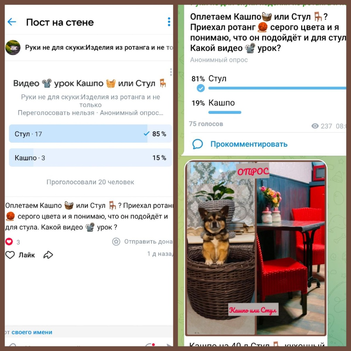 Доброе утро, всем сил и удачи в новой рабочей недели! Можно подвести итоги опроса. Стул 🪑оплетаем 🧶 первым, спасибо за активность 🤗.