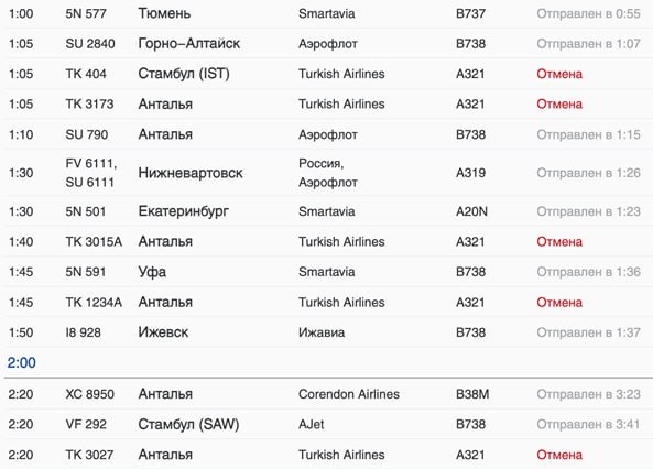 Turkish Airlines в ночь на понедельник отменила несколько рейсов в Анталью и Стамбул из Пулково