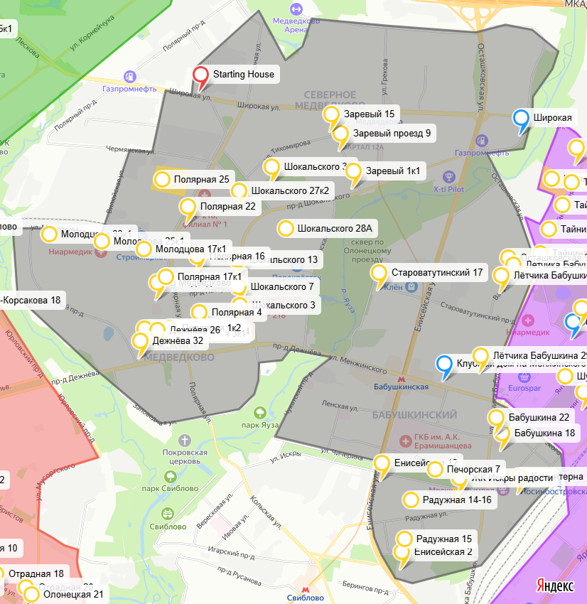 Друзья, добрый день, продолжаем с Вами изучение локаций северо-востока Москвы. Уже были Алексеевский, Останкинский и Свиблово. Сегодня - Медведково/Бабушкинский. На северо-востоке Москвы 3 административных района - Бабушкинский, Южное и Северное Медведково. Можно рассматривать каждый район по отдельности, но так как характер застройки и социальный состав достаточно однородные, а также нет никаких "барьеров", разделяющих эти районы, можно не заморачиваться и рассматривать как единый жилой массив. В этом случае, границы жилого массива будут выглядеть как-то так: Милая симпатичная локация по потребительским свойствам, схожая с Чертаново на юге и Марфино на севере Москвы. Большая формирующаяся парковая зона вдоль Яузы, 600 гектар парков от Мытищ до ВДНХ, которые в итоге превратятся в "Суперпарк Яуза". Сквер по Олонецкому проезду Один из лучших жилфондов в спальных районах Москвы, благодаря активной застройке в 2005-2016 годах домами серии П-44Т, а также программе реновации с преобладание