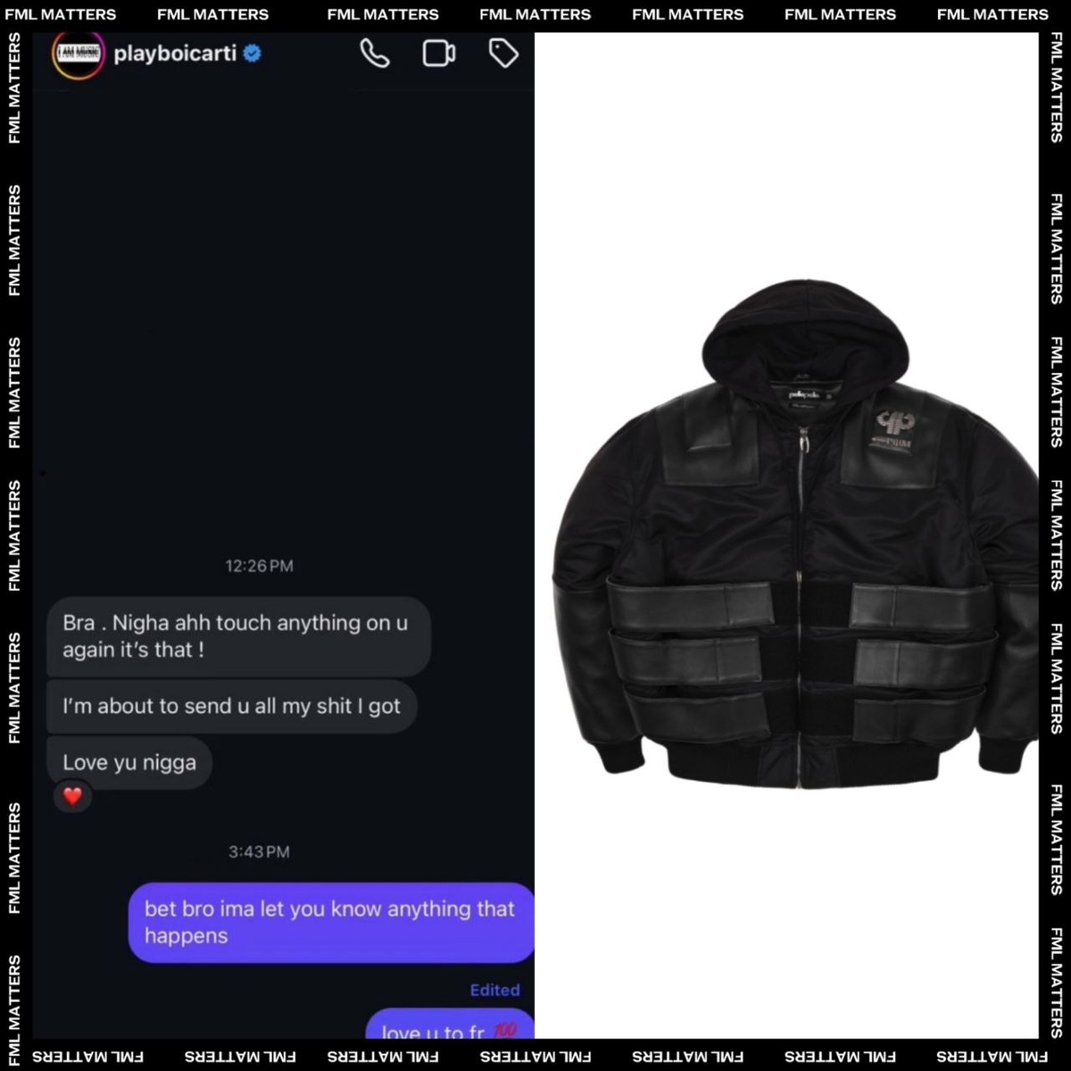 🥰 PLAYBOI CARTI ЗАСТУПИЛСЯ ЗА СВОЕГО ГЛАВНОГО ФАНАТА! На недавнем стриме у Кая Цената произошёл неприятный инцидент: Ракай напал Янг Дабо и украл его куртку от OPIUM. «Бро, если этот н*гга ещё раз прикоснется к тебе, это конец для него. Люблю тебя, н*гга», — написал Карти в личных сообщениях Дабо. Карти не только выразил поддержку, но и пообещал отправить Дабо много коллекционного мерча из своего арсенала, чтобы поддержать его после случившегося. 💀 FML MATTERS