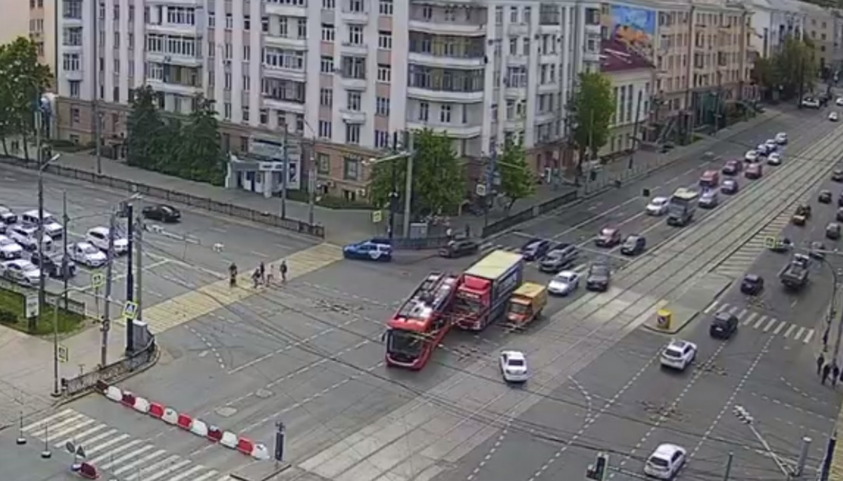 При просмотре видеоролика можно отследить, что троллейбус и длинномер ждали зеленый сигнал светофора, стоя буквально бок о бок на светофоре перед перекрестком с проспектом Ленина. Потом они двинулись в прямом направлении в сторону Алого поля практически одновременно, но участок Свердловского проспекта от пересечения с проспектом Ленина и почти до перекрестка с улицей Коммуны закрыт из-за проведения коммунальных работ. Два автомобиля из потока поехали прямо – в нарушение всех правил дорожного движения, прямо по трамвайным рельсам. А троллейбус №12 начал поворачивать влево на проспект Ленина. Но водитель фуры к тому моменту ехал все еще прямо, поэтому троллейбус немного толкнул длинномер. После этого оба транспортных средства остановились. Как сообщал «ЧелябинскСегодня» ранее, это привело к образованию автомобильных заторов на проспекте Ленина и на участке Свердловского проспекта. Ситуация с проездом по этому перекрестку все еще остается сложной, поэтому водителям лучше продумать альтерн