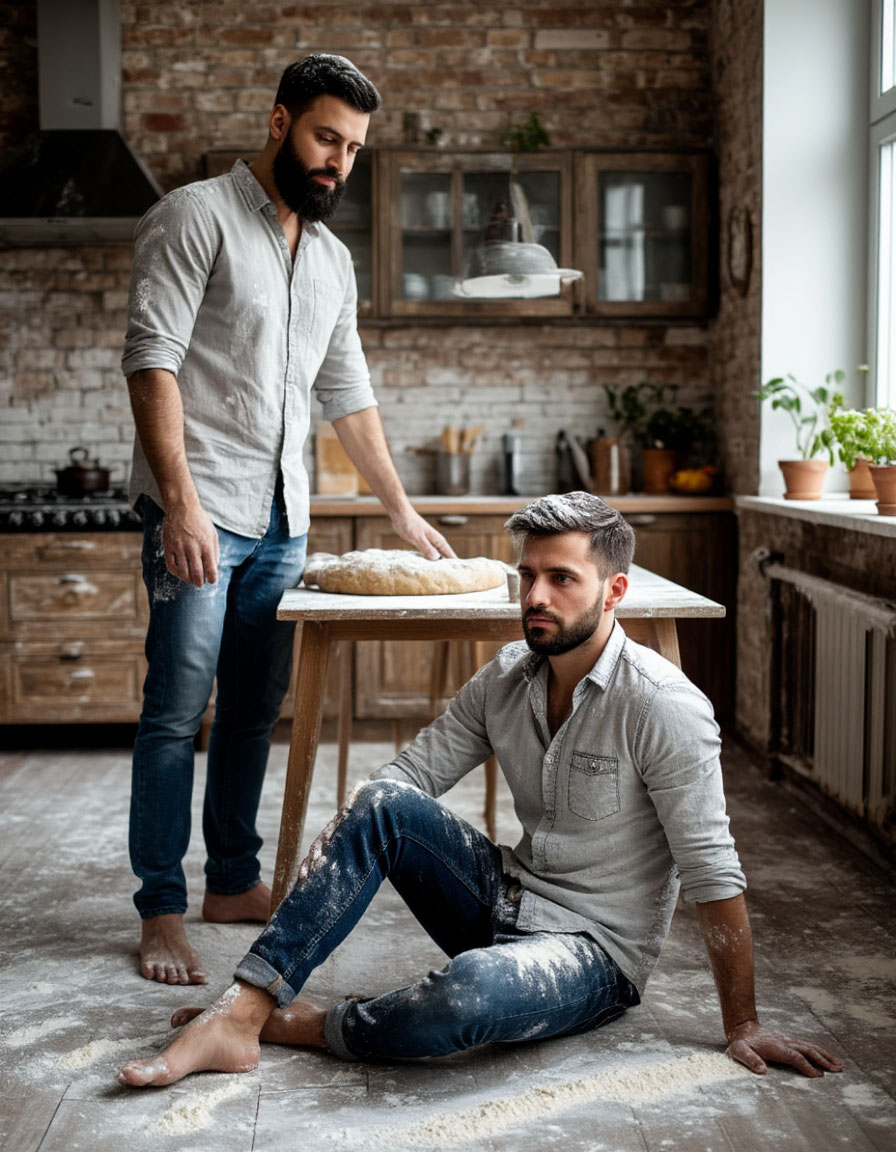 - Черт! Чёрт! Чёрт! - закричал он, скорчившись от боли уже в двух местах, потому что не только пальцы пострадали от этого падения, но и важный для мужчины орган. Ко всему этому, он еще и ногой, падая, ударился о край стола, где лежали разложенные продукты. И пакет с мукой, стоявший неосторожно на самом краешке стола, свалился на пол и рассыпал свое содержимое широким белоснежным веером почти на весь пол кухни.