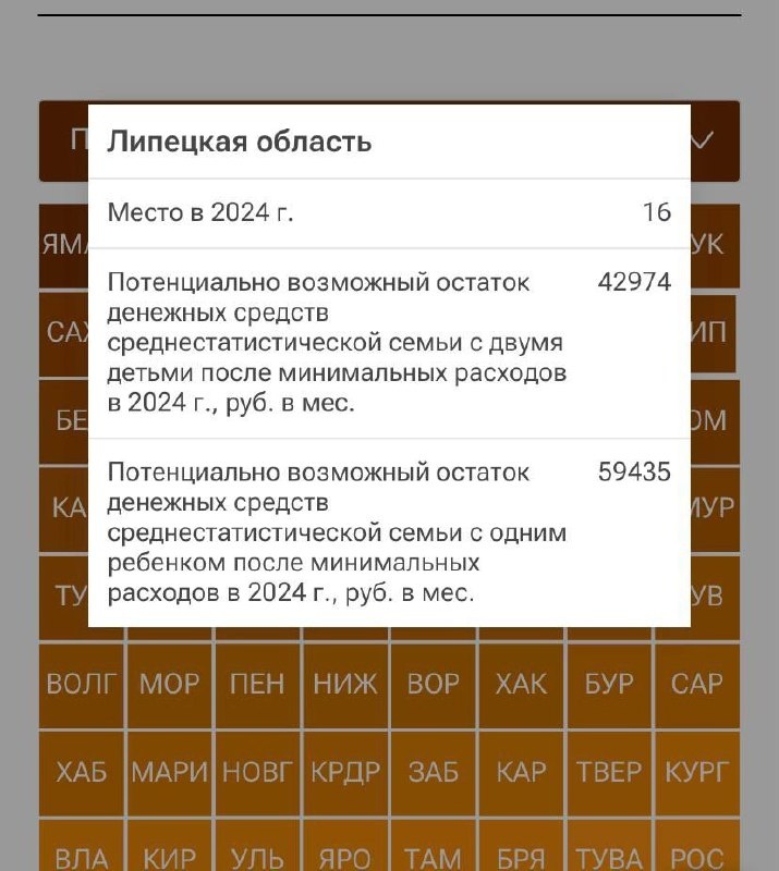 Липецкая область не вошла в топ-15 регионов по уровню благосостояния семей Наш регион занял 16 место в рейтинге. В среднем, у семьи с двумя работающими родителями и двумя детьми после минимальных жизненных трат остается 42 974 рублей. Если ребенок один, то остается 59 435 рублей.