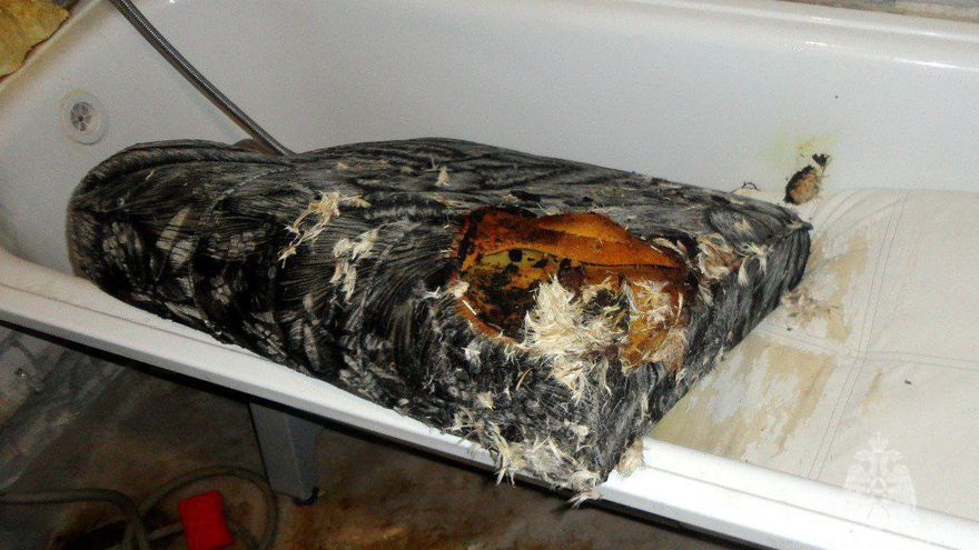 В городе Энгельс Саратовской области вчера, 25 мая, курильщик едва не погиб на пожаре. Об этом сегодня сообщили в региональном управлении МЧС. Инцидент произошел в квартире одного из домов на улице Студенческая. Мужчина заснул с сигаретой на диване. Подушки загорелись, образовалось сильное задымление. Специфический запах почувствовали соседи и вызвали пожарных. Сотрудники МЧС вскрыли дверь и вывели жителя квартиры на свежий воздух. От госпитализации он отказался. Сколько лет мужчине, в МЧС не уточнили. Вызов о задымлении поступил в 19:16. На место выезжали три пожарных экипажа. Судя по опубликованным фотографиям, одну из горевших подушек положили в ванну.