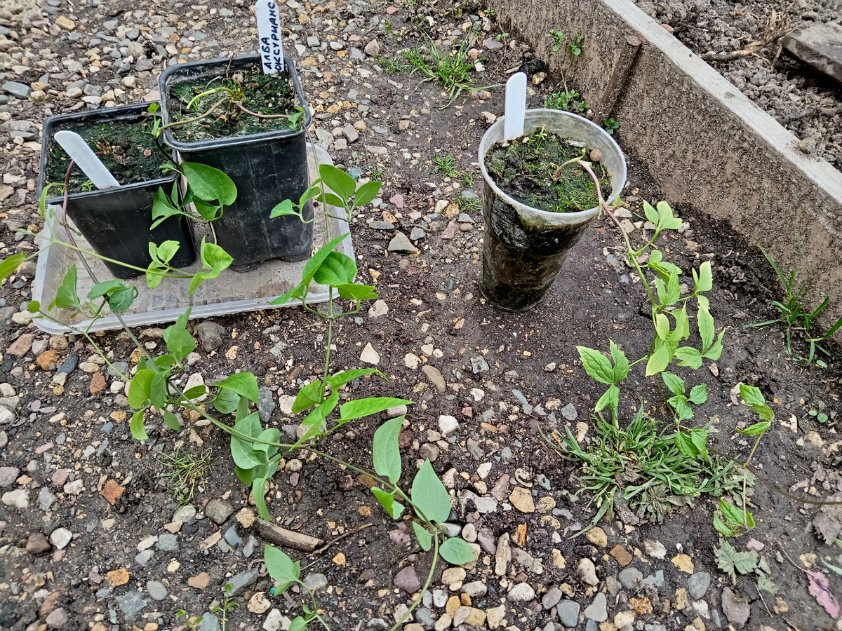 Глупо надеяться, что в этом году наш клематис сильно вырастет. Поэтому надо подстраховаться и посадить однолетние лианы. Я посадила родохитоны. Было интересно попробовать эти растения, интересно, зацветут они у меня?