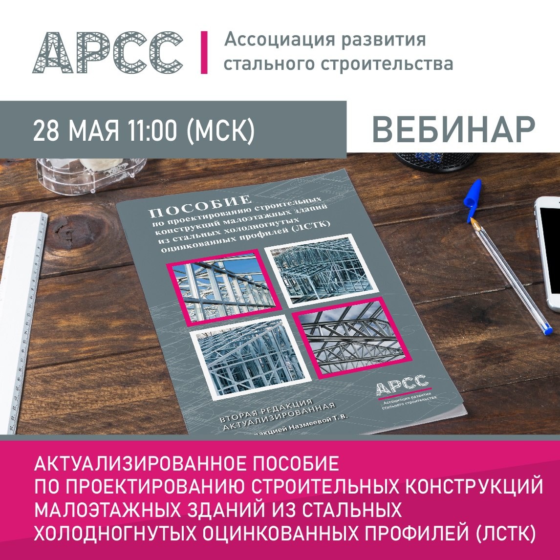 28 мая 2025 г. в 11:00 (МСК), Ассоциация развития стального строительства проведет бесплатный вебинар на тему «Актуализированное пособие по проектированию строительных конструкций малоэтажных зданий из стальных холодногнутых оцинкованных профилей (ЛСТК)». Программа вебинара: - защита от коррозии оцинкованных профилей; - альбом типовых конструкций и узлов; - рекомендации по проектированию ЛСТК в сейсмических районах; - теплоизоляция и звукоизоляция. Докладчик: Назмеева Татьяна Вильсовна, к.т.н., эксперт АРСС Для участия в онлайн-мероприятии необходима предварительная регистрация https://clck.ru/3M7V4s Erid: 2VtzqxXy23v Реклама. Ассоциация развития стального строительства ИНН 7731398012