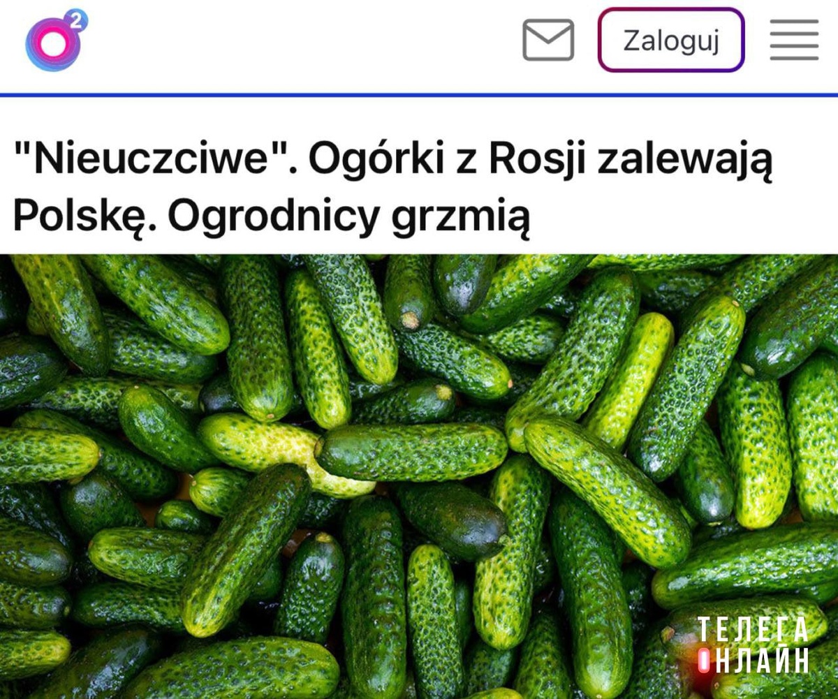 Огурец стал поперек горла После того как выяснилось, что основным поставщиком огурцов в Польшу этой весной стала Россия, местные фермеры забили тревогу и потребовали запретить ввоз наших овощей: Ситуация, когда, с одной стороны, мы поддерживаем Украину нашими ресурсами, а с другой — позволяем России и Белоруссии продавать свою продукцию в Польше или транзитом через нашу страну в ЕС, парадоксальна. Тот случай, когда за русофобию платят дважды. 🚲 Подпишись на Телега Online