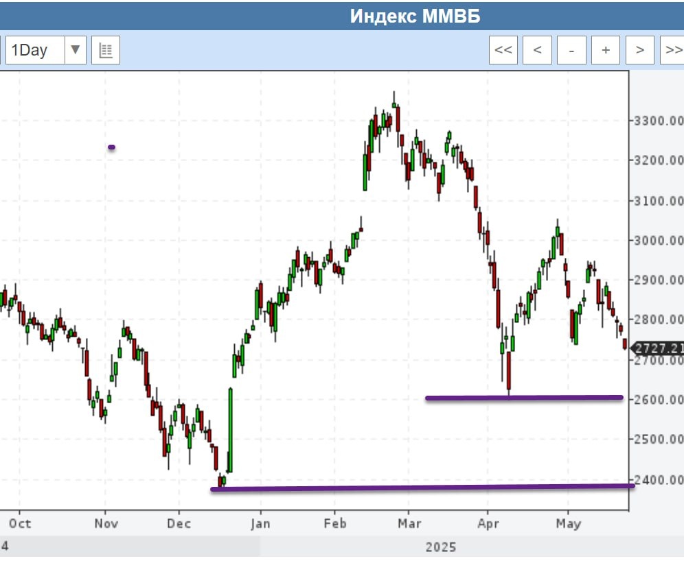 Итак, после того как стало ясно что скорый мир вряд ли будет, ситуация затягивается ещё на несколько месяцев, наш рынок впал в небольшую депрессию. В основном из-за отсутствия покупки. Тем не менее рынок остаётся достаточно дешёвым на текущих уровнях особенно с пониманием того, что ситуация по СВО хоть и с задержкой но близка к разрешению. Подготовил новую партию денег для дозакупок портфеля, но пока как и большинство занимаю выжидательную позицию. ☝️По прежнему не верю в обновление декабрьских лоёв, а вот весенние лои обновить мы очень даже можем, после выхода из ранее описываемой консолидации вниз. ☝️Так что для наращивания портфеля ИМХО стоит подождать или фактического разворота на рынке с началом покупки или уровней поближе к 2600. Чего пока и жду.