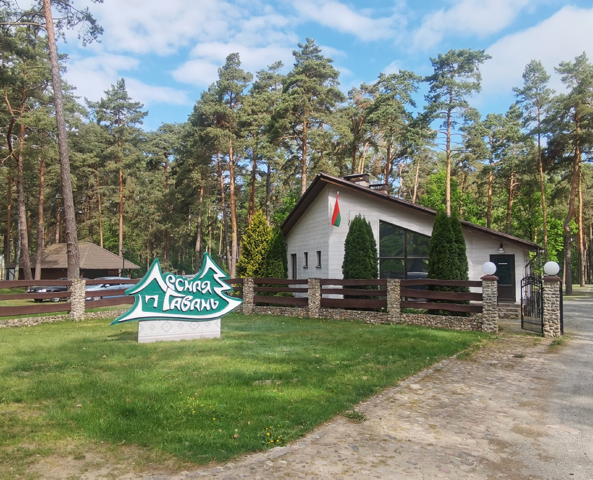 Расположен отель в сосновом бору и как и большое количество подобных загородных отелей, построен на базе бывшего пионерского лагеря, которых в лесах Белоруссии великое множество - только по соседству насчитал ещё парочку, но уровнем попроще. Сайт у отеля никудышный, видимо давно не обновлялся, вместо фотографий - визуализации, описание номеров неполное, поэтому сразу было не понятно, новый ли это отель или нет, как он выглядит на самом деле и вообще чего ожидать. Как уже потом выяснил, отелю (его современной части) несколько лет и судя по всему ему ещё есть куда расти и развиваться.