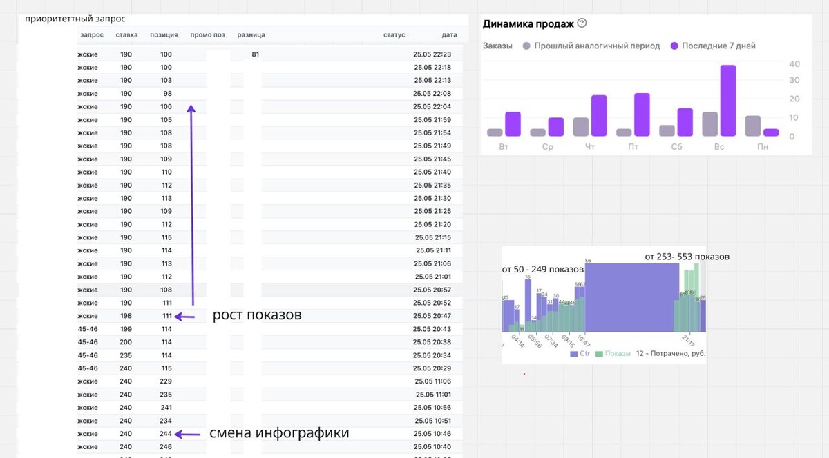 Аукцион и рост показов и рост органики за счет смены инфографики на Wildberries