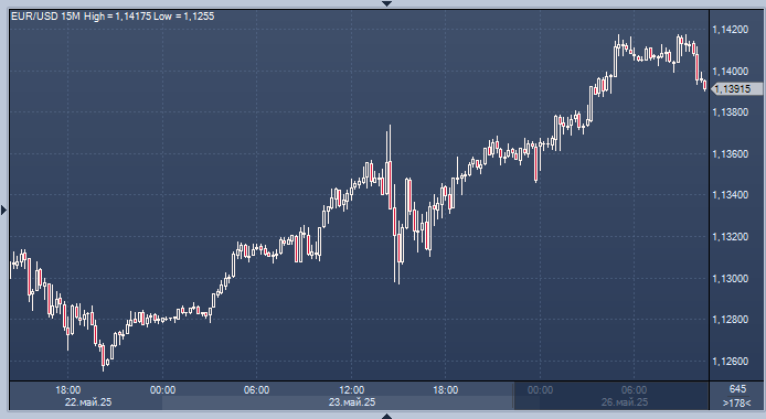 Валюты, чувствительные к риску, укрепляются на фоне ослабления опасений по поводу роста экономики. На долларовые активы также оказывает давление масштабный налоговый законопроект Трампа. Американская валюта даже уступает позиции безопасным иене и франку График евро/доллара интервалами в 15 минут В понедельник после того, как президент США Дональд Трамп отложил введение 50-процентных пошлин на товары из Европейского союза с 1 июня, евро укрепился вместе с другими валютами, чувствительными к риску, такими как австралийский доллар. Это произошло после того, как ЕС попросил дать больше времени для достижения соглашения. Доллар продолжил слабеть по отношению к широкому спектру валют-аналогов. Отказ Трампа от своей политики и его законопроект о сокращении расходов и налогов, который сейчас разрабатывается, оттолкнули инвесторов от американских активов. «Тема «продавай Америку», которая была актуальной в апреле, снова становится актуальной», — сказал Рэй Этрилл, глава отдела валютных исследов