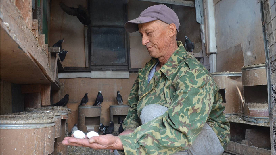 Анатолий Рязанцев из Верхней Хавы работает водителем автобуса. В этом ответственном работяге сложно заподозрить настоящего романтика. А ведь в хозяйстве мужчины более 60 голубей. Выращивает их не для заработка, а для души. Дорожит каждым питомцем. Разведение голубей много лет назад было повальным увлечением. Теперь настоящих ценителей осталось немного. Любимая забава советских мальчишек — гонять по крышам голубей — не передалась сегодняшним детям. Анатолий родился в Липецкой области. Затем родители переехали в село Абрамовку, а повзрослев, парень выбрал местом жительства Верхнюю Хаву. — Я не тратил карманные деньги на покупку своих первых птиц, — вспоминает Анатолий. — Мой старший брат Василий увлекался голубями и дал мне, 12-летнему, несколько особей на развод. С годами я понял, насколько это умные и преданные птицы. У них всё как у людей. Живут парами, часто сохраняя привязанность на долгие годы. А ещё они прекрасные родители, всегда трепетно заботятся о своём потомстве. Анатолий ра