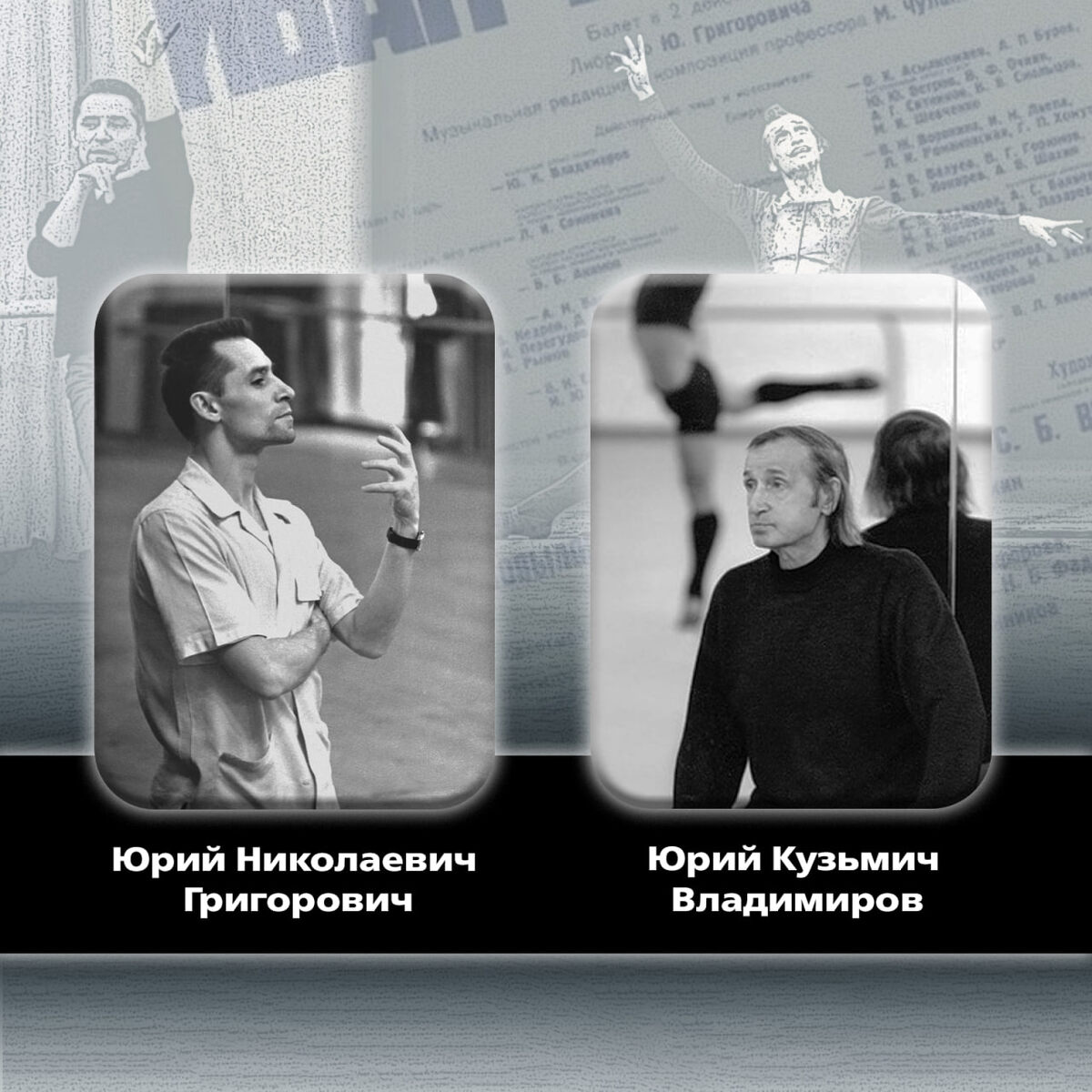 В память о Юрии Григоровиче и Юрии Владимирове «Что самое важное? Захотеть поставить. Предлогом может быть всё, что угодно», — эти слова, сказанные Юрием Григоровичем в одном из интервью, наверно, можно считать его девизом. Григорович стал одним из тех, кто создал классический балет заново, создал виртуозный мужской танец, вышедший на один уровень с женским, переосмыслил культовые балетные спектакли и воспитал несколько поколений артистов, столь же гениальных, как и он сам. Перечислить все его заслуги под силу только крупным исследователям балета; мы же вспомним те, без которых невозможно представить образ великого балетмейстера. Самой большой главой биографии Григоровича стал Большой театр, с которым маэстро был связан с 1964 года. На его сцене были созданы гениальные оригинальные постановки балетов «Щелкунчик», «Спартак», «Иван Грозный», «Ангара», «Золотой век», сюда же он перенёс поставленные ранее в Кировском театре «Каменный цветок» и «Легенду о любви», а затем и парижскую поста