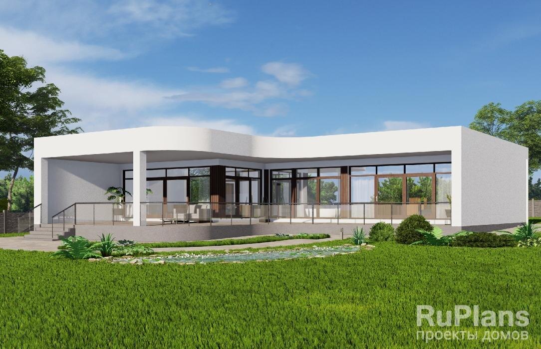 Одноэтажный дом с размерами здания 17,76 х 17,72м. Наружная отделка здания – штукатурка. Фундамент – забивные сваи/свайно-ростверковый буронабивной. Наружные стены – газобетонные блоки. Перегородки – каркасные с ГКЛ. Пол этажа – пол по грунту. Перемычки - монолитные железобетонные. Крыша плоская. Кровля – полимерно-битумный кровельный материал. Окна — металлопластиковые. После оплаты проект предоставляется в двух экземплярах в формате А3.