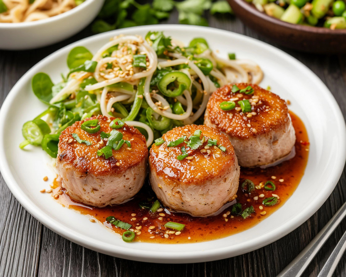 #ещенеприготовленоаужеслюни #ЧШБачтоесли #чтоприготовить Этот рецепт родился на стыке кулинарных традиций Востока и Запада. Вдохновением послужили азиатские вкусы — пряный имбирь, сладковатый мед и ароматный соевый соус, которые идеально сочетаются с сытной свининой. Идея сырной корочки возникла из желания добавить европейскую пикантность, превратив простое блюдо в нечто изысканное. Рисовая лапша, легкая и нейтральная, стала идеальным дополнением, чтобы не отвлекать от яркого дуэта мяса и соуса. Этот рецепт — результат эксперимента, созданного для уютного ужина, где хочется удивить близких чем-то новым, но доступным. Особенности блюда: Пряный чеддер дает пикантную корочку, свинина остается сочной, а соус добавляет сладко-острую азиатскую нотку. Легкая рисовая лапша не утяжеляет блюдо. Общая: Калории: 2468 ккал Белки: 144 г Жиры: 108 г Углеводы: 234 г На порцию (4 человека): Калории: 617 ккал Белки: 36 г Жиры: 27 г Углеводы: 58.5 г Много, но вкусно! 1. 🍖 Свинина: