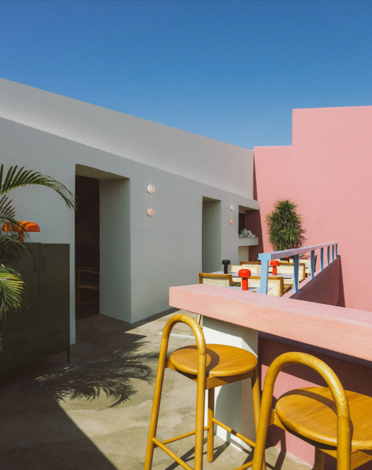 Архитектурное бюро Zhizome получило в работу нестандартную задачу. «Нам предстояло преобразовать типичное для Кипра здание в ресторан мексиканской кухни с зоной кофейни и пространством для вечеринок, — рассказывают основатели практики Татьяна Синельникова и Евгений Решетов. — В качестве основного референса мы выбрали проекты мексиканского архитектора Луиса Баррагана, известного своими минималистичными, но при этом сохраняющими локальную идентичность решениями». Ресторан Tio занял историческое здание в центре Лимассола. Когда-то в нем уже располагался ресторан, но в последние годы пространство пустовало. Внутри здание представляло собой группу помещений, окружающих внутренний двор, при этом некоторые из них не были напрямую связаны друг с другом. «Задачу объединения всех помещений мы решили путем интеграции нового элемента — розовой лестницы, плавно переходящей в балкон, а затем в перегородки насыщенного синего цвета, — объясняет команда. — Эта протяженная, динамичная конструкция с в