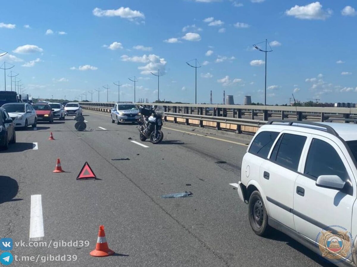 25.05.2025 года в 08:50 в г. Калининграде на Южном обходе 0 км + 200 м двигался мотоцикл «KAWASAKI» под управлением 30-летнего водителя, который при движении на прямом участки дороги не обеспечил безопасность, допустил наезд на автомобиль «ОПЕЛЬ» под управлением 32-летнего водителя.