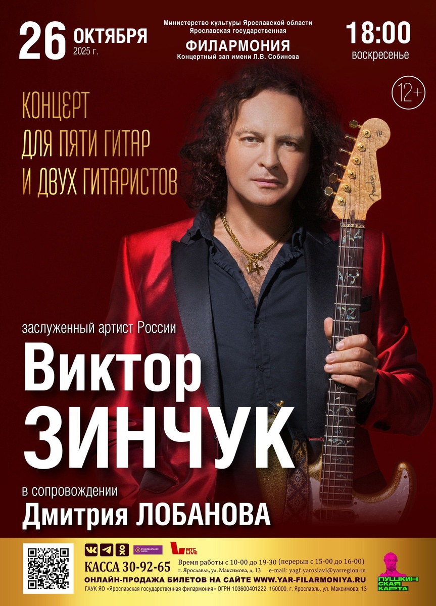 Программа, которую Виктор Зинчук представит ярославской публике 26 октября 2025 г., носит название «Концерт для пяти гитар и двух гитаристов». Её уникальность заключается не только в разнообразии репертуара, но и в оригинальном звуковом решении: музыкальные произведения исполняются на разных акустических гитарах, которые добавят новые краски каждому произведению. Звучание электрогитары привнесет в программу драйв и энергетику. В концерте примет участие Дмитрий Лобанов (гитара, Москва) — музыкант, с которым Виктора Зинчука связывает многолетнее творческое сотрудничество. 🎶 В программе прозвучат авторские переложения произведений Г. Перселла, Т. О’Каролана, Ф. Шуберта, И. Брамса, Д. Шостаковича, кельтская музыка, оригинальные сочинения В. Зинчука Молодые люди могут сходить на концерт по «Пушкинской карте» в рамках национального проекта «Семья». Приглашаем всех наших друзей, любителей хорошей музыки и гитары. До встречи на концерте! Билеты 👉 https://clck.ru/3MGxBU
