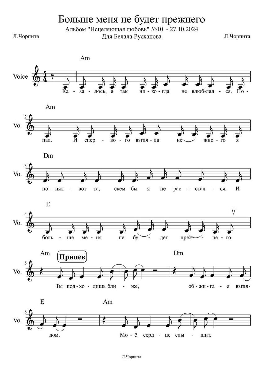 А вот и нотный лист написанная композитором и автором песни Чорпита Лидия Зиновьевой (Лирикум).