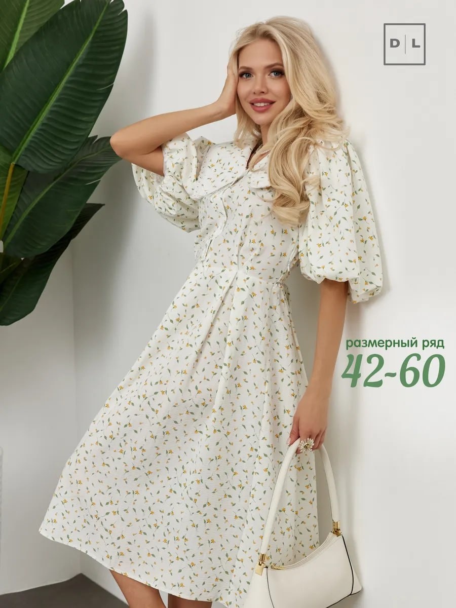 Летнее платье в цветочек свободного кроя с укороченными рукавами. Идеально подойдёт для жаркого летнего дня на пляже или в парке.