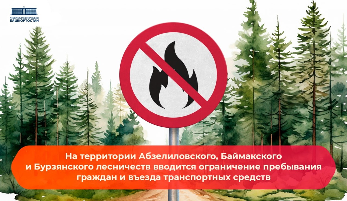 Ограничение на посещение лесов 🚫 С 26 мая по 15 июня вводятся ограничения на пребывание граждан и въезд транспорта на территории Абзелиловского, Баймакского и Бурзянского лесничеств. Мера принята Министерством лесного хозяйства Республики Башкортостан в связи с повышенной пожарной опасностью — для предотвращения чрезвычайных ситуаций. ❗️Ограничение распространяется на туристов, охотников и всех, кто планирует посещение лесов в этих районах. Исключение составляют юридические лица и граждане, осуществляющие мероприятия по охране, защите и воспроизводству лесов или в соответствии с договорами аренды или купли-продажи лесных насаждений. 👮♂️ На местах ежедневно работают патрульно-маневровые группы. 🔥 Если вы заметили возгорание или дым, сообщите: — Региональная диспетчерская служба: 8 (347) 218-14-14 — Единый номер лесной охраны: 8 (800) 100-94-00 ℹ️ Ознакомиться с приказом можно по ссылке.