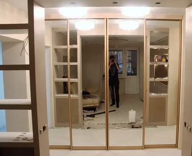 - Зеркальные двери устанавливайте с помощником: их вес больше, а поверхность хрупкая.