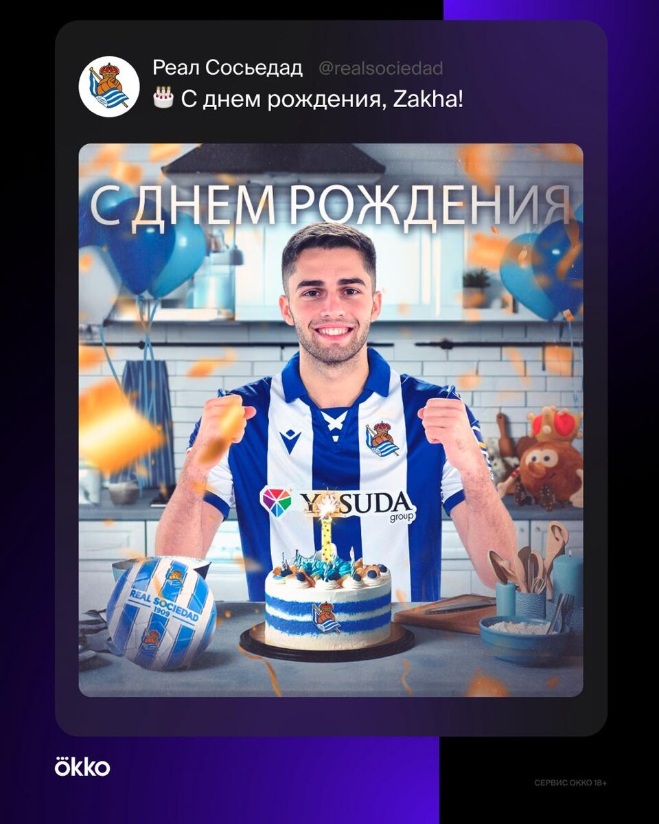 Арсену Захаряну сегодня исполняется 22 года. «Реал Сосьедад» опубликовал поздравление на русском 🥳