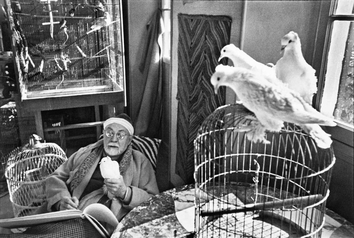 Анри Матисс, рисующий с натуры голубей, Венеция, 1944 год.