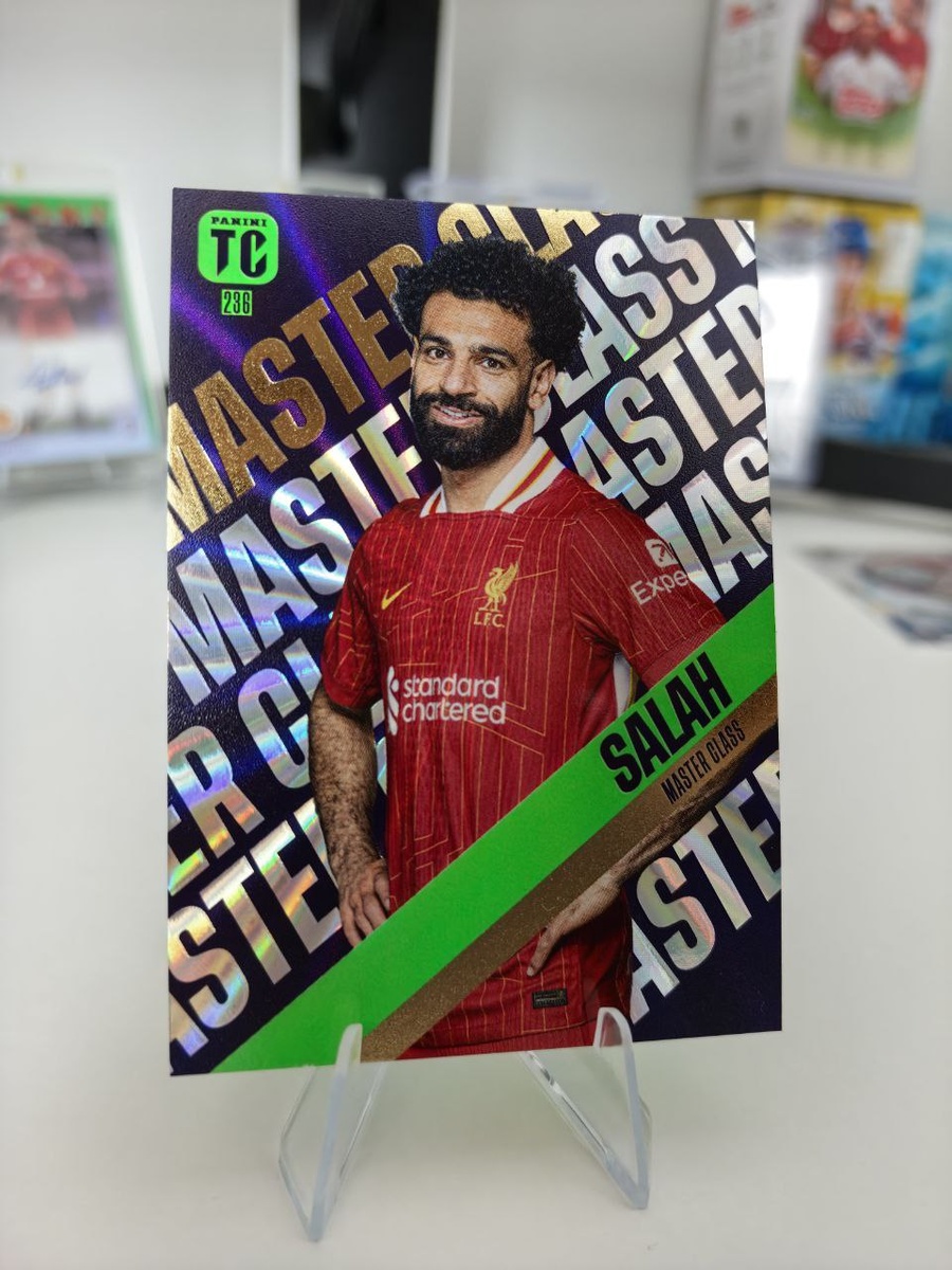 Салах снова на вершине!🇬🇧 Сегодняшняя карта дня посвящена египетскому волшебнику и легенде «Ливерпуля» — Мохамеду Салаху. Его карточка из коллекции Panini Top Class подсерии Master Class не только ярко переливается, но и напоминает нам о выдающемся сезоне, который провёл Мо! Топ-достижения Салаха в сезоне 2024/25: 🏴Он набрал 47 очков по системе «гол+пас» в сезоне АПЛ (29 голов + 18 передач), повторив рекорд Алан Ширера и Энди Коула, но сделал это в 38 матчах, а не в 42, как они! 🏴Салах стал лучшим бомбардиром и ассистентом лиги, впервые в истории АПЛ объединив эти две награды в одном сезоне. 🏴Он получил свою четвёртую «Золотую бутсу», повторив достижение великого Тьерри Анри. 🏴А ещё — был признан лучшим игроком сезона АПЛ, став первым африканским футболистом с этим титулом дважды (2017/18 и 2024/25). И это всё в сезоне, когда 🇬🇧 «Ливерпуль» снова стал чемпионом Англии, подняв заветный кубок над головой! Карточка Салаха из этой