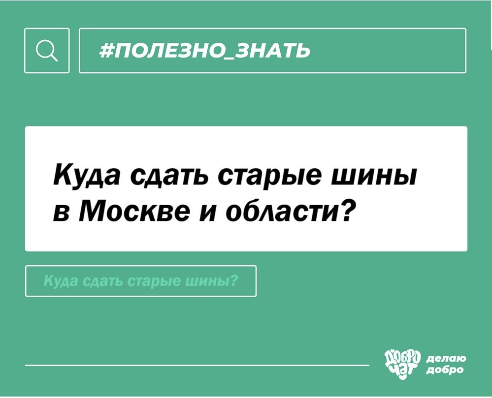 ✔️ Полезный понедельник: 🛞 Куда сдать старые шины в Москве и области? Друзья! Сегодняшний пост будет особенно актуален для автолюбителей: мы затронем животрепещущий вопрос о том, что делать с отработанными шинами в Москве и области? Спойлер: Рассмотрим экологичный вариант! 🚗 Воспользуйтесь предложением ЭкоФонда - сервисом «Шина». Здесь предлагают сдать шины на переработку,. 🗺 В помощь вам интерактивная карта пунктов приема со всеми условиями приема. 📞 По всем вопросам звоните на горячую линию: ▪️ 8 800 700 36 06 🥳 И помните, ваши старые шины - это резиновая крошка, покрытие для детских и спортивных площадок, материалы для дорожного строительства и многое другое. 🍀 Избавляйтесь от хлама и совершайте благое дело! 🔵 Материал подготовила: Екатерина Носачева #полезно_знать _______________ 💟 Просто хочу помочь "ДоброЧату"