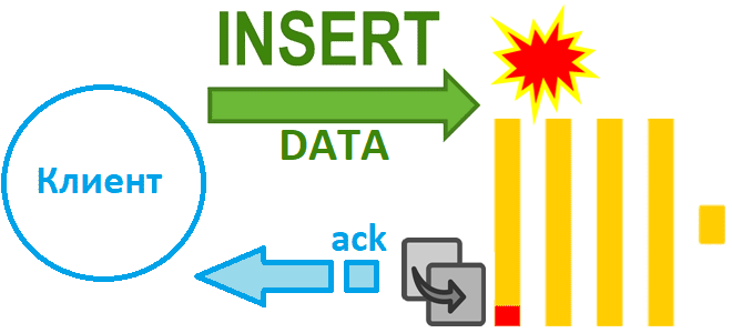 - когда клиент получает подтверждение на вставку, данные гарантированно записываются в хранилище базы данных и становятся доступными для поиска по запросам;