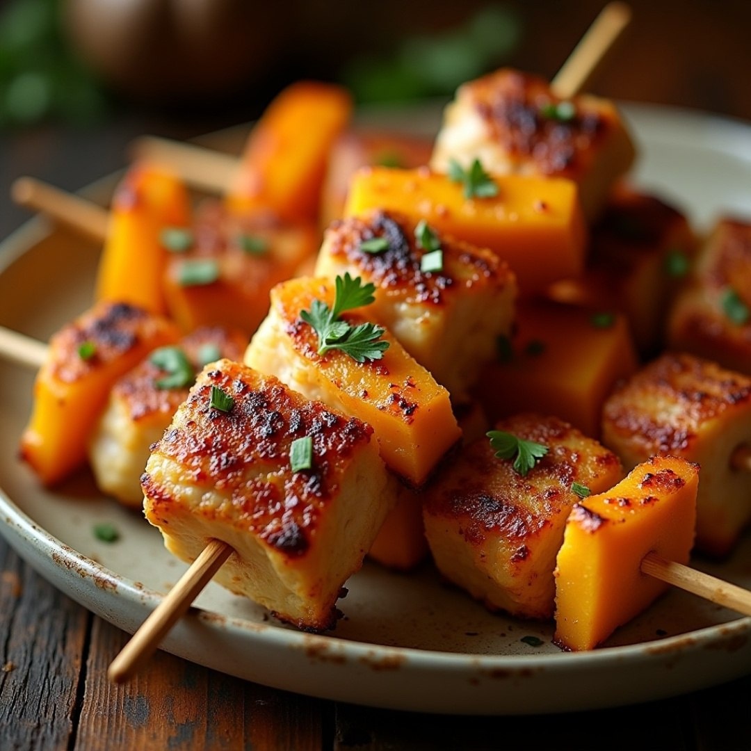 Шашлык из курицы и тыквы Ингредиенты⤵️ 🔸Куриное филе — 500 г 🔸Тыква — 300 г 🔸Лук репчатый — 1 шт 🔸Оливковое масло — 3 ст.л. 🔸Лимонный сок — 2 ст.л. 🔸Чеснок — 2 зубчика 🔸Паприка копченая — 1 ч.л. 🔸Соль — 1 ч.л. 🔸Черный перец — ½ ч.л. 🔸Зира — ½ ч.л. Приготовление🎃 1. Курицу нарежьте кубиками 3-4 см, тыкву — чуть крупнее. 2. Лук нарежьте кольцами, чеснок измельчите. Смешайте с маслом, лимонным соком и специями. 3. Замаринуйте курицу и тыкву в соусе минимум на 1 час. 4. Нанижите на шпажки, чередуя курицу и тыкву. 5. Жарьте на гриле или в духовке (200°C) 15-20 минут, переворачивая, до румяной корочки. Рецепт дня #шашлык #курица #филе #мясо #птица #маринад #тыква #овощи