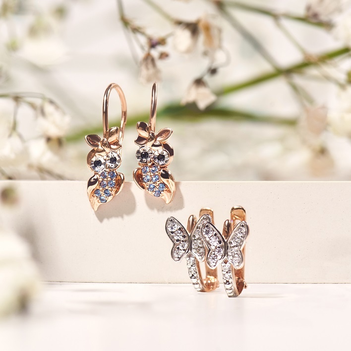 Подобрать ювелирный подарок для самых маленьких – это не только огромное удовольствие, но и ответственное задание. Эксперты 585GOLD знают, как выбрать драгоценный подарок, который будет не только безопасным и комфортным, но и подарит радость каждому малышу! Самые популярные украшения для маминых модниц – ювелирные серёжки. Многие получают свою первую пару в виде подарка еще в раннем возрасте. При проколе обычно используются гвоздики, выполненные из гипоаллергенных материалов, таких как медицинская сталь или имплантационный титан. После полного заживления мочки их зачастую заменяют украшениями из золота или серебра с родиевым покрытием. Французский замок – бережный и надёжный выбор для маленьких ушек. Его плавный изгиб обеспечивает защиту чувствительной кожи, а фиксатор в нижней части изделия надежно удерживает серьгу во время активных игр и сна. Среди множества симпатичных дизайнов лучше выбирать модели с миниатюрными декоративными элементами, поскольку крупный камень может оказаться
