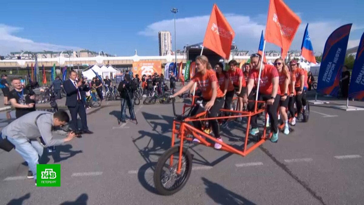 [ Смотреть видео на сайте НТВ ] В Петербурге прошел ежегодный велопарад «ЗСД Фонтанка фест». Поддержку в проведении этого популярного городского фестиваля оказывает «Газпром нефть». За семь лет это зрелищное и очень массовое мероприятие обзавелось традициями. Неизменным остается маршрут — 15 километров с семью мостами. Постоянные гости, которые из года в год приходят сотнями человек. А вот география участников меняется. В этом году она расширилась до 130 городов. Только раз в год ЗСД превращается в велодорожку, при этом оставаясь скоростной магистралью. Впервые в рамках фестиваля прошла велогонка. С установленным рекордом могут посоревноваться даже автомобилисты — 15 километров трассы за 17,5 минут. Александр Горшков, организатор фестиваля: «Впервые спортивная гонка, и у нас будет установлен главный рекорд трассы и еще множество рекордов, на которые будут ориентироваться участники заездов в последующие годы, которые хотят проверить себя на скорость». Среди тысяч велосипедов на старте п