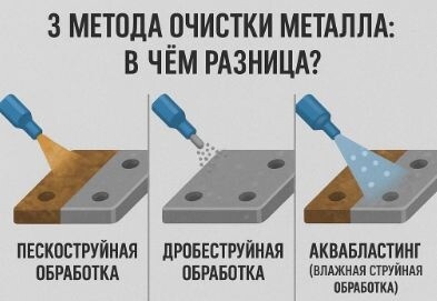 🔧 3 метода очистки металла: в чём разница? Когда речь идёт о восстановлении, подготовке к покраске или удалении загрязнений — выбор между пескоструйной, дробеструйной и аквабластинговой обработкой становится ключевым. Разберёмся 👇 🔸 1. Пескоструйная обработка 📌 Суть: под давлением подаётся абразив (чаще всего песок) ✅ Плюсы: • Отлично снимает ржавчину и старую краску • Быстро очищает большие поверхности • Подходит для подготовки к покраске ❌ Минусы: • Поверхность становится шероховатой • Не подходит для тонких или деликатных деталей 🛠 Идеально: для кузовов, рам, металлических конструкций 🔸 2. Дробеструйная обработка 📌 Суть: используется металлический дробь вместо песка ✅ Плюсы: • Уплотняет и упрочняет металл • Отлично очищает толстый налёт • Оставляет поверхность более однородной ❌ Минусы: • Более агрессивна • Дороже в исполнении 🛠 Идеально: для мостов, балок, станин, рессор 🔸 3. Аквабластинг (влажная струйная обработка) 📌 Суть: смесь воды и абразива подаётся под д