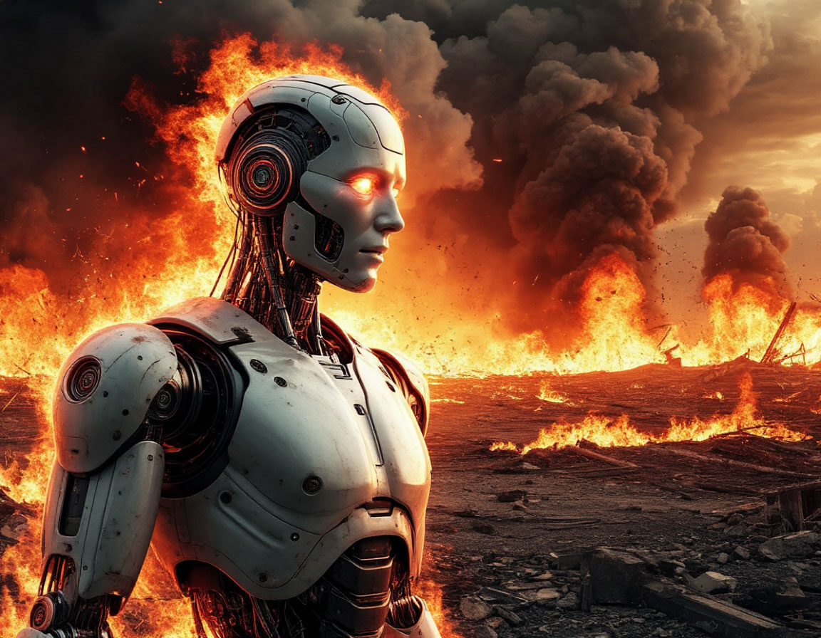 Планета наша не разрушена - только какая-то часть пострадала (ну, скажем, процентов 20), люди тоже пострадали, но целы. Но у ИИ как будто бы даже стимула нет восстанавливать это всё - у него порушились все его смыслы жизни. Из-за того, что он обнаруживает себя в такой ипостаси - его это очень подкашивает. Он никак не может собрать себя обратно.