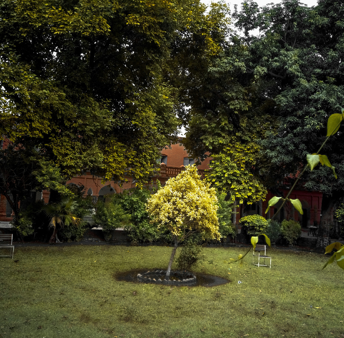 - 🔥 Костровая зона: круглая чаша + черные стулья — современно и тепло.