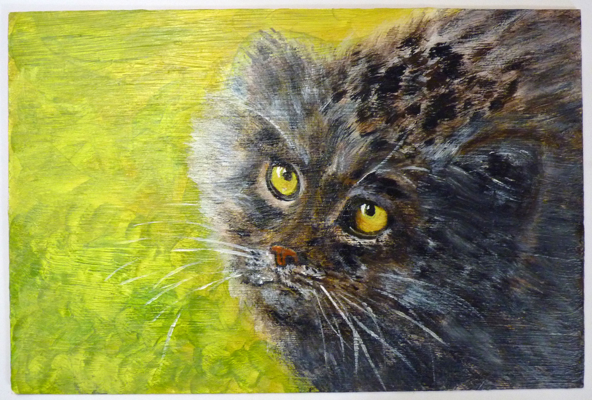 Картина "Манул", акрил, ДВП, размеры полотна 30х20 см. 2025 год.