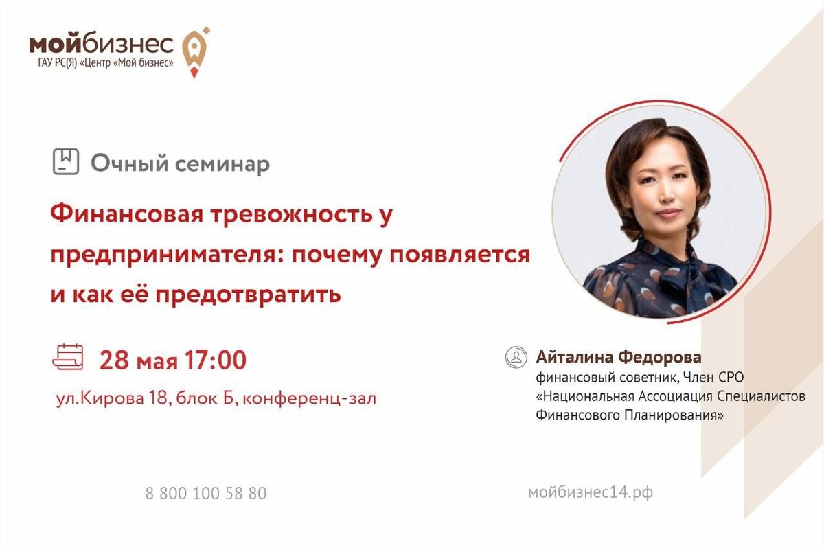 Центр «Мой бизнес» приглашает принять участие в очном семинаре «Финансовая тревожность у предпринимателя: почему появляется и как её предотвратить»