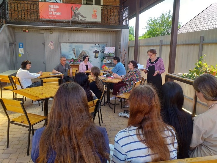 23 мая в Межпоселенческой центральной библиотеке Пролетарского района состоялась встреча членов литературно – поэтического клуба «Лира» со студентами 1 курса группы «Повар кондитер» Пролетарского аграрно-технологического техникума. В начале поэтической программы «Поэзия родного края» вспомнили тех поэтов, которые ушли из жизни, но оставили о себе добрую память в своих произведениях: Василия Цыганенко, Клавдию Кучерову, Андрея Кузнецова, Александра Середа, Леонида Постникова. На встречу со студентами пришли местные поэты Алексей Студнев, Александр Коньков, Татьяна Калантырь, Галина Чернявская, Елена Щербакова. Они рассказали о своей биографии, творчестве, стихах, ответили на вопросы: «С какого возраста начали писать стихи?», «Как часто рождаются стихи, как это происходит?», «Кто любимый автор?», «Какое собственное стихотворение любимое?». Заинтересовали студентов письма с фронта отца Елены Щербаковой и Галины Чернявской. Ведь когда еще им представится возможность подержать в руках насто