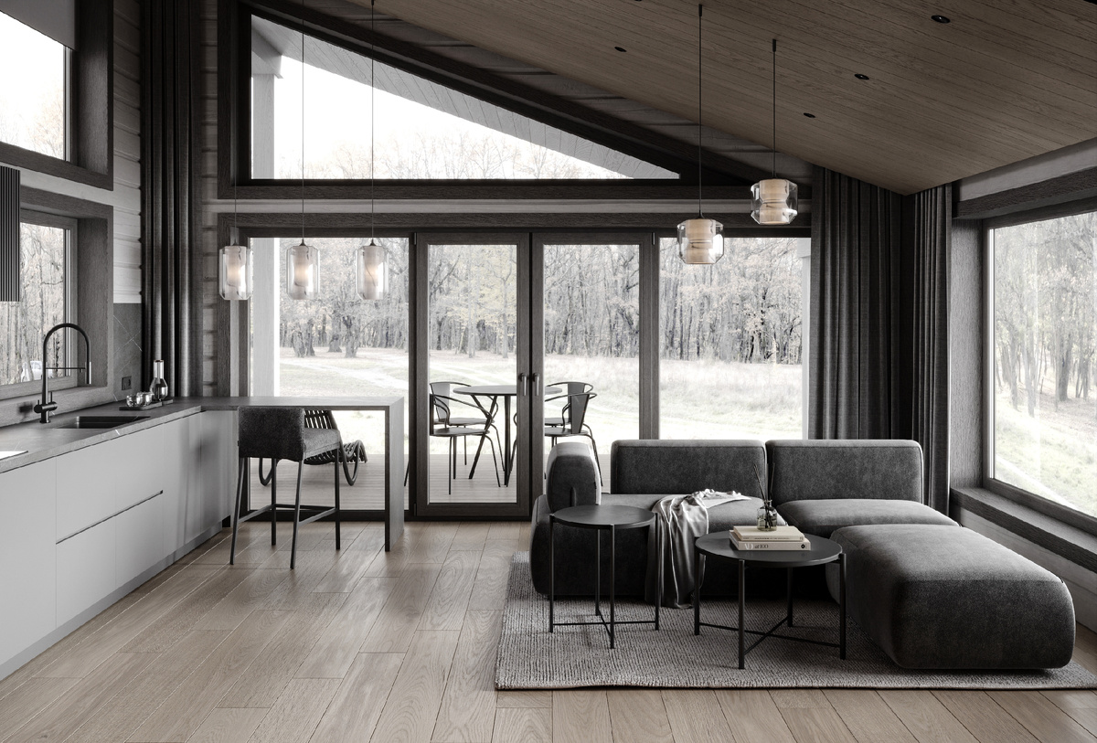 Когда речь идет о создании идеального банного комплекса, важнейшую роль играют окна. Они не только наполняют комнату светом, но и вносят свою эстетику, создавая уютную атмосферу для отдыха и расслабления. Рассмотрим несколько ключевых элементов, которые делают окна важным элементом композиции банного пространства. Комната отдыха — это сердце банного комплекса, место, где все члены семьи и гости расслабляются после парной, общаются и восстанавливают силы. Панорамные окна в этой части комплекса создают ощущение пространства и близости к природе. Благодаря обилию стеклянных элементов комната наполняется естественным светом, что особенно приятно в утренние часы. Мягкие кресла и диваны вокруг камина, окружённые мебелью и декором, создают атмосферу уюта и комфорта. Панорамные окна не только украшают эту зону, но и открывают великолепные виды на окружающий ландшафт. В зимнюю пору, когда за окном лежит снежный покров, такое окно превращается в живописную картину, в которую приятно смотреть, на