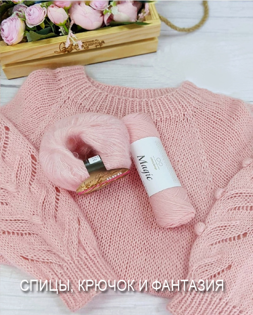 Представьте себе джемпер, который словно соткан из утренней дымки — нежно-розовый, воздушный и невероятно мягкий. Эта модель сочетает в себе: ✔ Тепло мериноса и объем кидмохера — идеальный дуэт для комфорта;