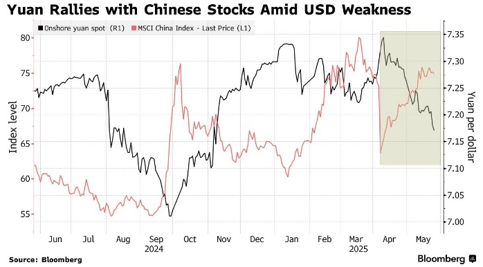 Ожидается, что китайские акции выиграют от дальнейшего укрепления юаня, который демонстрирует устойчивость на фоне торгового конфликта страны с США. Каждое повышение курса юаня по отношению к доллару на 1% может привести к росту китайских акций на 3% благодаря таким факторам, как улучшение прогнозов корпоративных доходов и усиление притока иностранного капитала По мнению аналитиков Goldman Sachs Group Inc., в перспективе китайские акции могут выиграть от дальнейшего укрепления юаня, который демонстрирует стабильность в условиях торгового конфликта с США. Каждый рост курса юаня по отношению к доллару на 1% может привести к росту китайских акций на 3%, считают эксперты, включая Кингера Лау. Это связано с улучшением прогнозов по доходам компаний и притоком иностранных инвестиций. Ранее в этом месяце банк повысил свой прогноз по курсу юаня на 12 месяцев с 7,35 до 7 за доллар. «Китайские акции обычно показывают хорошие результаты, когда валюта укрепляется», — отмечают Лау и его коллеги. Про