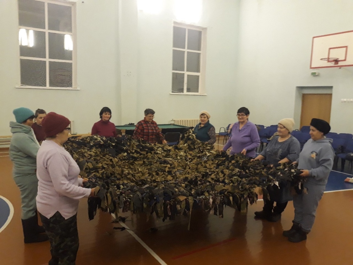 Даже вдали от фронта можно быть частью общего дела С началом специальной военной операции жители села Хусаиново активно включились в мероприятия по сбору гуманитарной помощи бойцам на передовой. В чате села заведующая сельским домом культуры Гульсасак Сагарьярова предложила односельчанам объединить усилия и опубликовала призыв, что для работы нужны материалы чёрного и тёмно-зелёного цветов, ножницы. Откликнулись многие, бросив свои домашние дела, пришли в Дом культуры и включились в благое дело. Непосильную помощь оказал и земляк из Уфы Радиф Нургалеев — он привёз целые рулоны ткани, предназначенной для пошива военной формы. Сельчане изучили технику и сплели маскировочную сеть для защитников Отечества. Готовую сетку они передали в штаб при районном Доме культуры. Но на этом помощь Хусаиновцев не закончилась. Творческие коллективы населённых пунктов Хусаиново, Новоянбеково, Камчалытамак и Кадыргулово не раз организовывали благотворительные концерты в местном клубе. Собранные средства
