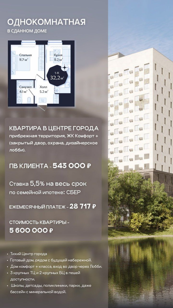 #ТЮМЕНЬ Замечательная однокомнатная квартира в проекте Да.Квартал Централь, которую можно приобрести с ежемесячным платежом всего 28 717 рублей в месяц по ставке 5,5% на весь срок! 📱89923566884 Алсу Рафисовна