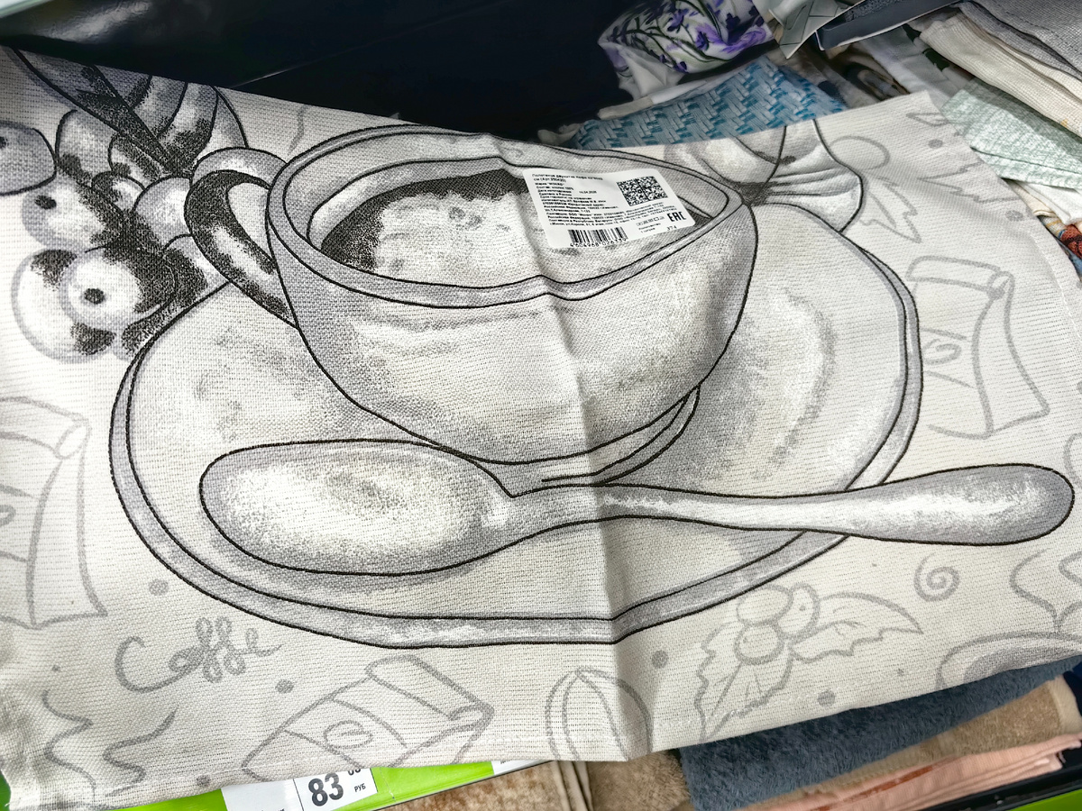 Что нас ждет нового в Фикс Прайс в ближайшие дни? Поставка новинок, часть уже выставлена. На витринах новинка для кухни - чашка на блюдце и ложечка, графика, новое оформление у полотенца. Цветное тоже в наличии, чашка с зернами кофе. Чуть шире, 42 см, обычно привозили не более 35 см, хлопковая ткань в две нитки. Ивановский текстиль. Ценника нет, идет приемка товара, полотенце по 124р. Полульняное полотенце еще больше по размеру, 50х70 см. Покажу, что из махровых полотенец в наличии. То, что самое большое, 70х100 см, оно поплотнее, но и цена максимальная для Fix price - 499р. Новинка для чистоты в ванной комнате, на кухне тоже подойдет, и пластиковые подоконники отмоет, так как подходит для пластика. Можно очистить предметы с хромированным покрытием, кафель, акриловую и эмалированную поверхность ванны, и для фаянса подойдет. По сути, одно средство для разных поверхностей. Рядом полочки с зубными пастами и щетками. Покажу все, что со скидкой. На Колгейт скидка, но только на тюб