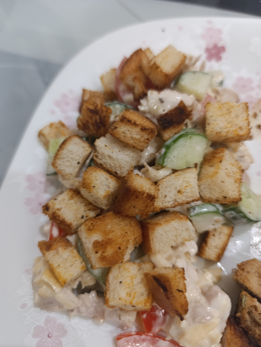 Салат может составить неплохую конкуренцию Цезарю. Готовиться быстро, просто, а главное вкусно. Ингредиенты: Для заправки можно выбрать любой соус, который вам нравится. Я выбрала уже готовый соус "Цезарь". Приготовление: Приятного аппетита! ❤️