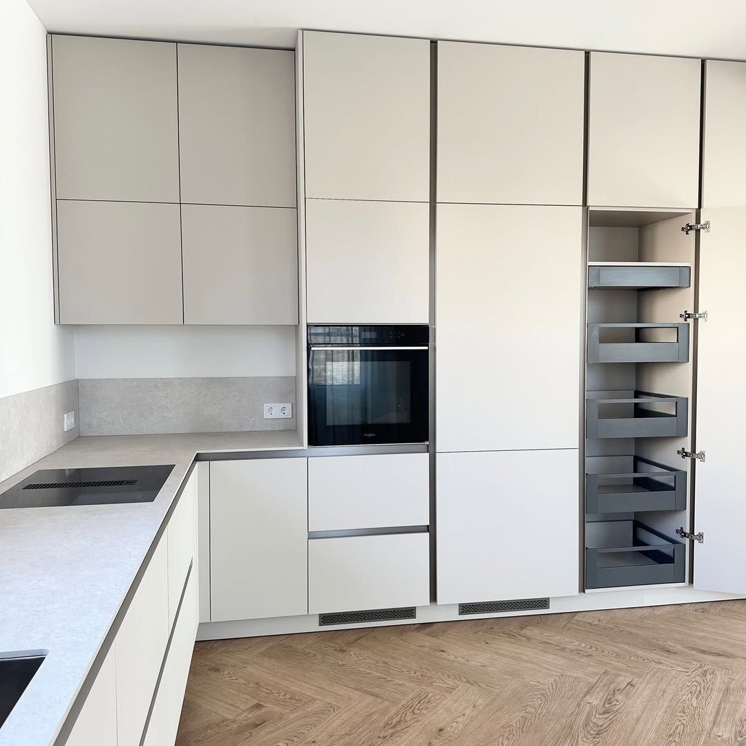 ISTOK LIVE #19: Кухня, где даже воздух разложен по полочкам! Всем привет! Это снова ISTOK, и сегодня у нас на повестке дня – вот эта красавица! Кухня, от которой глаз не оторвать, правда? 😍 Идеальный порядок, максимум света и ни одной лишней детали. Запрос был чёткий и понятный: семья хотела стильно, чтобы всё под рукой, но чтобы ничего не "кричало" и не мешало. Чистота линий и умное хранение – вот что было в приоритете. Что мы сделали (и почему это так круто получилось 🔥): Фасады AGT с профилем Открываются легким движение через ручку J-Pull (GOLA). Это не только ультрамодно, но и суперпрактично – поверхность идеально гладкая, ухаживать одно удовольствие. Плюс, AGT – это всегда про качество и шикарный вид. Шкафы до потолка: Классика жанра для тех, кто ценит каждый сантиметр. Вся кухонная утварь и припасы аккуратно спрятаны, но всегда в легком доступе. Звезда программы – высокий шкаф-колонна с выдвижными секциями (справа на фото!). Это просто магия: выдвигаешь, и все баночки-кор